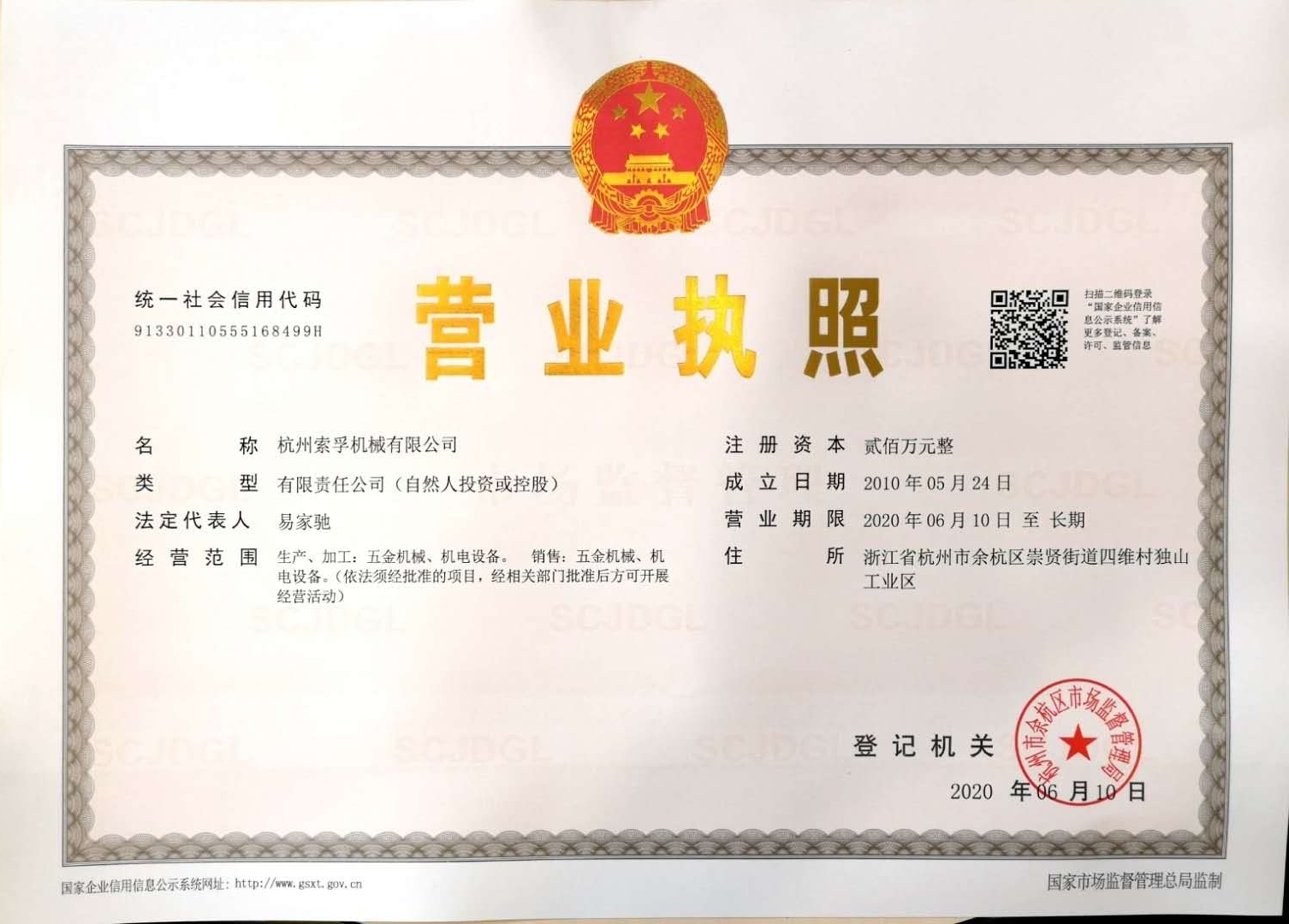 About us浙江索孚科技有限公司(杭州索孚機械有限公司) 有成立于2010年,經(jīng)歷多年的發(fā)展壯大,目前擁有員工總數(shù)50人,其中中層以上工程師技術人員10人。公司設置有設計研發(fā)部、財務部、銷售部、生產(chǎn)部、采購部、售后服務部及人事部,部門相對完善,各部門相互協(xié)作,更好的服務客戶。